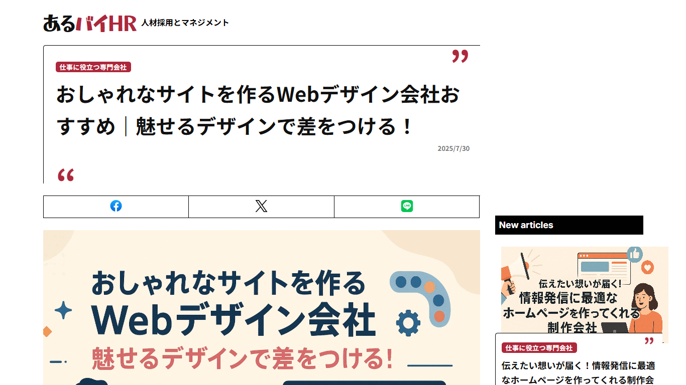 人材採用とマネジメントの情報をお届けする「あるバイHR」さんの特集記事「おしゃれなサイトを作るWebデザイン会社おすすめ|魅せるデザインで差をつける!」にて、Web Studio S.をご紹介いただきました。