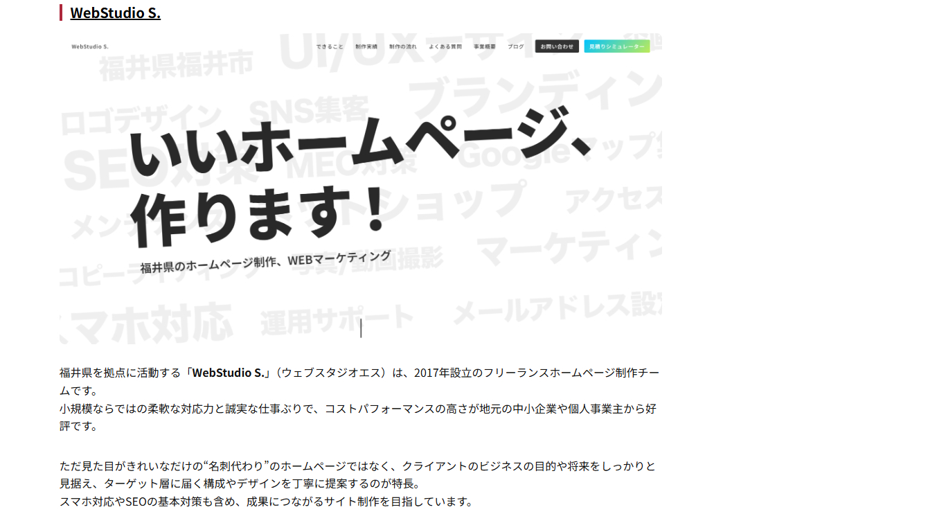 WebStudio S.は、福井県を拠点に活動するフリーランスのWeb制作チームです。